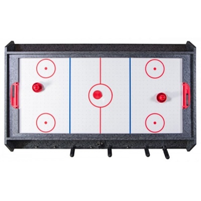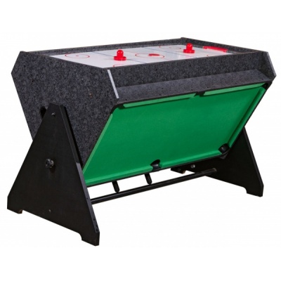 Экономит пространство, так как нужные игры находятся в одном столе. Один поворот и уже играем в хоккей вместо футбола, очень удобно. Полностью укомплектован, работает от сети.