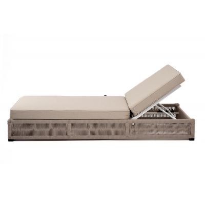 Шезлонг 4SIS Ривьера плетеный из роупа, бежевый круглый, ткань бежевая