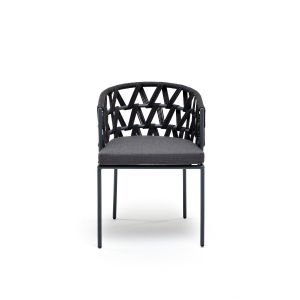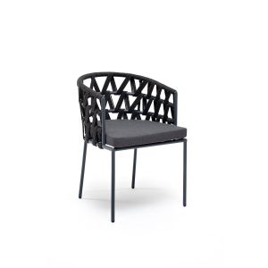 Стул 4SIS Лион плетеный из роупа, каркас алюминий темно-серый, роуп темно-серый круглый, ткань бежевая