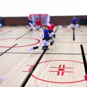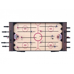 Экономит пространство, так как нужные игры находятся в одном столе. Один поворот и уже играем в хоккей вместо футбола, очень удобно. Полностью укомплектован, работает от сети.