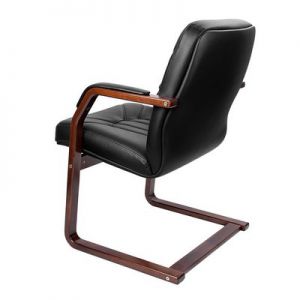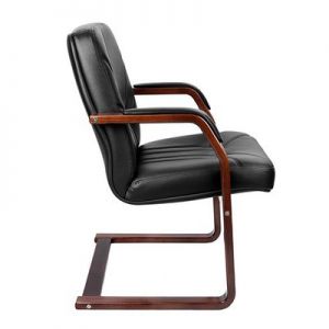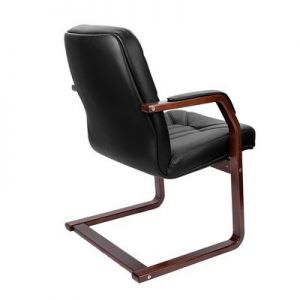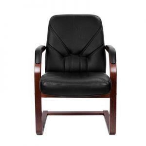 Кресло для посетителей Multi-Office PARIS D Кресло для посетителя низкая спинка на ножках кожа черная+к/з/дерево темный орех