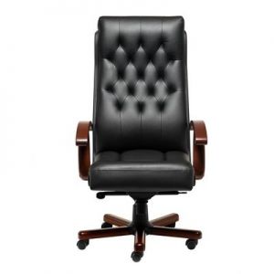 Кресло для руководителя Multi-Office VICTORIA A Кресло руководителя высокая спинка кожа черная+к/з/дерево темный орех