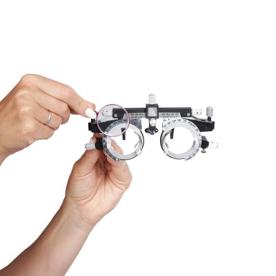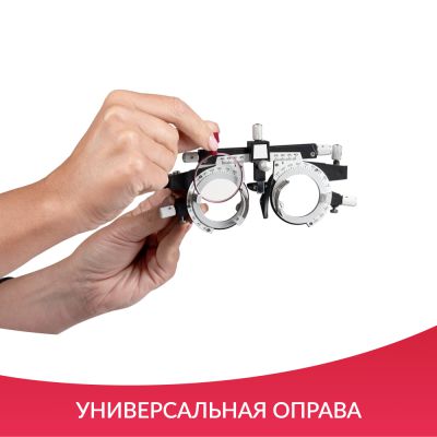 | Универсальная оправа: | Универсальная пробная оправа регулируется с помощью шарнирных винтов и подходит для проверки зрения у пользователей с различной формой и размером головы. Два зажима оправы удерживают до 4 линз каждый, позволяя точно выбрать подходящую диоптрию. Регулировка оправы даёт возможность изменять ось цилиндрических и призматических линз и межзрачковое расстояние, а также найти удобное положение подушки для носа. |