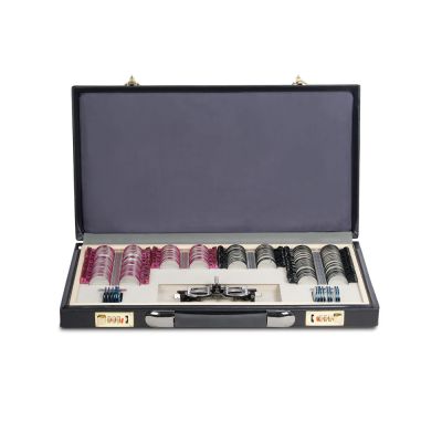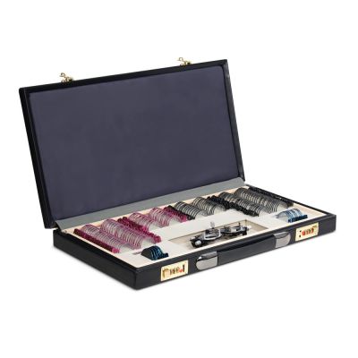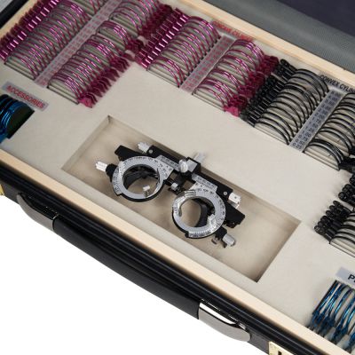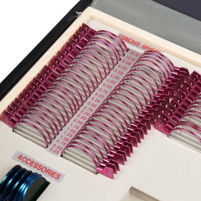 | Металлическая обойма: | Все линзы в наборе имеют прочную металлическую обойму, что делает их более долговечными при интенсивном использовании. Оправа не содержит острых краёв, которые могли бы поранить пациента или врача. Материал обоймы устойчив к коррозии. Для удобства поиска линзы с отрицательными диоптриями имеют обоймы розового цвета, а с положительными — чёрного цвета. |