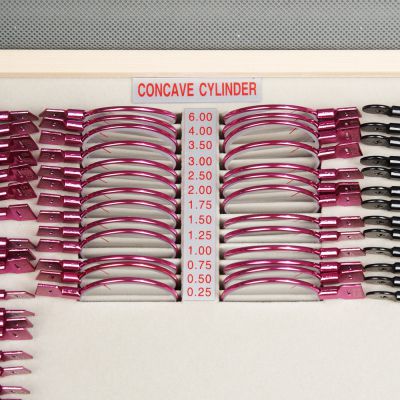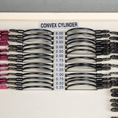 | Сферические линзы: | Набор включает сферические отрицательные (-) (вогнутые) и положительные (+) (выпуклые) линзы силой от 0,25 до 12,00 дптр. Выпуклые линзы используются для исследования гиперметропии (слабой клинической рефракции), вогнутые — для исследования миопии (сильной клинической рефракции) и старческой дальнозоркости. |