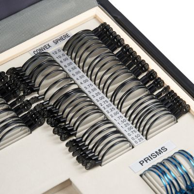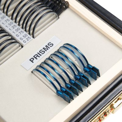 | Призматические линзы: | Данные линзы используются для проверки косоглазия и скрытого косоглазия, а также для тренировки глаз. В наборе представлены парные призматические линзы оптической силой от 0,5 до 3,00 пр дптр. |